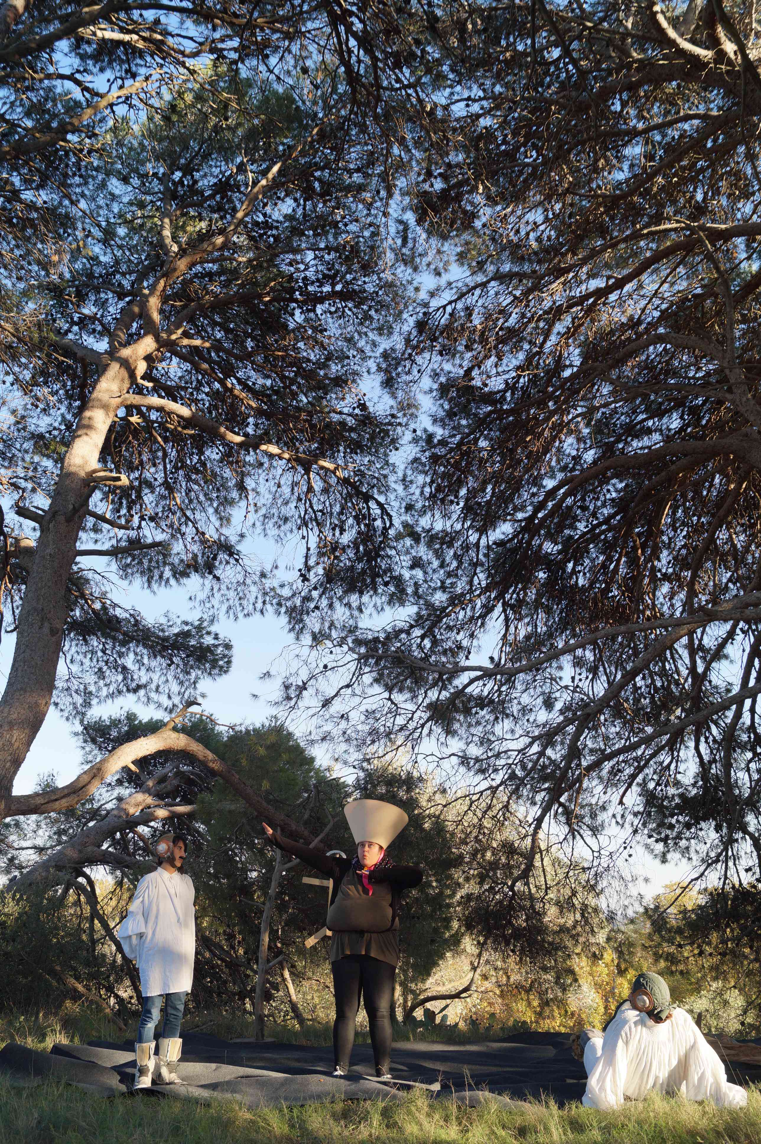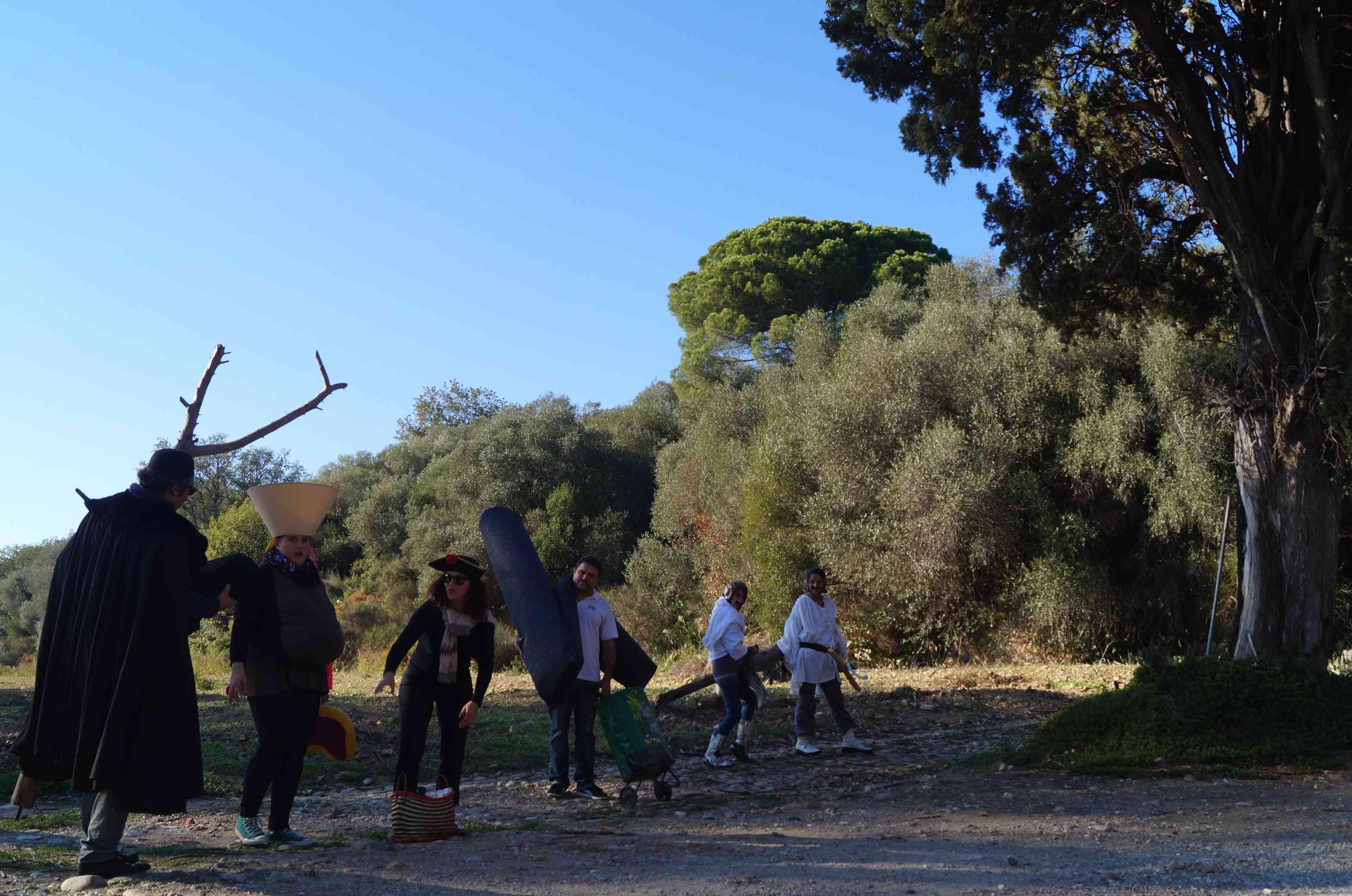 Deuxième étape, le laboratoire. Plongée dans l’Aquarium, parmi les vieilles pierres du Mas Blanes, encore habitées par les souvenirs de la Llevantina, lieu de résidence permanente des compagnies Amnésik et Volubilis. Errances, expérimentations, allers-retours entre le texte et le plateau, sans plan préétabli. Seulement une discipline, une régularité dans la pratique et la nécessaire prise en compte des propositions du groupe.