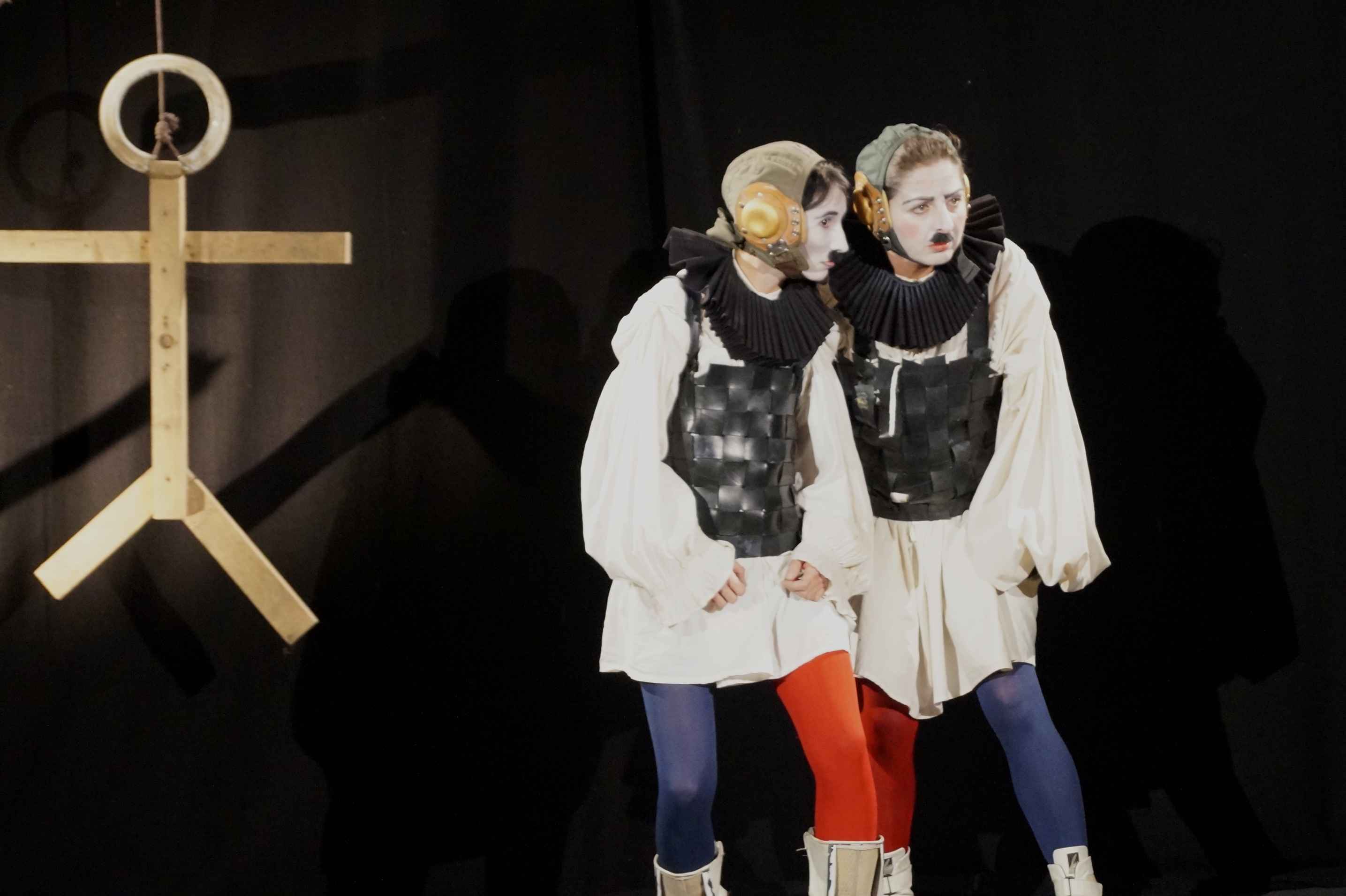 La comédie prime, par la parole, par le geste et les situations. On sourit, on rit de et avec ce couple de gardiens irrésistible – mais l’ensemble est sous-tendu par une tragédie latente, à l’image de A et B, deux clowns-gardiens égarés au pied d’un arbre et d’un pendu.